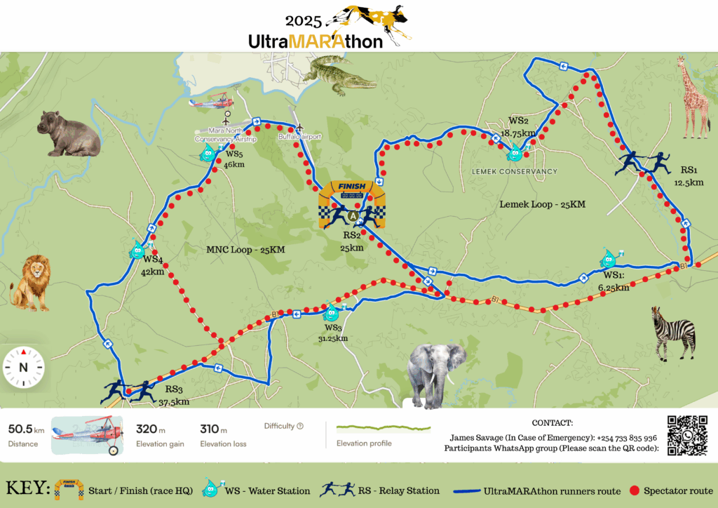 Started in 2020, the Ultra MARAthon is a 50km single-day foot race through the conservancies of the northern Maasai Mara ecosystem in Kenya. The race, run either as an individual or as part of a relay team, takes participants through the northern Mara conservancies giving them a unique sporting experience within one of Africa’s jewels.